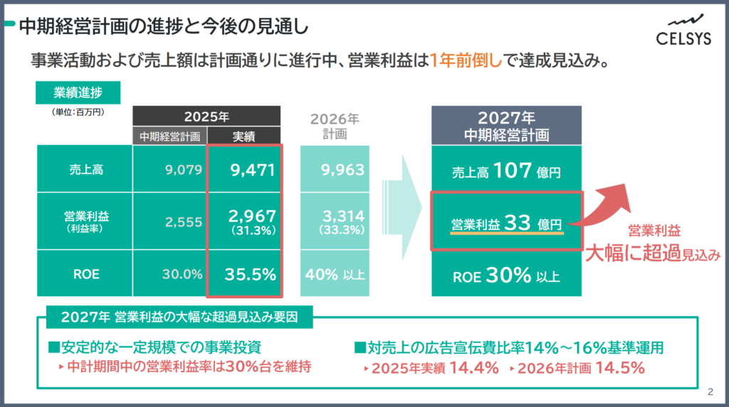 これらの外部環境変化を踏まえると、セルシスは今後3年間で大きく成長する可能性がある。